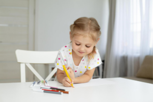 Bátran mutassa meg lányának a helyes ceruzafogást! Érdemes eleinte vastag, háromszögű ceruzát használni. A ceruzafogást úgy érdemes tanítani és megmutatni a gyermeknek, hogy a két ujjával csippentse meg – hüvelykujj és mutatóujj -, majd a középső ujjával hátulról támassza meg. Így próbáljanak nyomot hagyni a papíron, először csak firka vonalat, később különböző formákat. Amennyiben a ceruzafogás már jól megy és állandósult, kipróbálhatják a színezést, valamint a rajzolást is, mindvégig figyelve a megfelelő ceruzafogásra. Ha van kedvük, bátran csinálják ugyanezt ecsettel is, ilyenkor a nyomot hagyó alkotás történjen festékkel! Nagyon szokták szeretni a gyermekek ezeket a sokszor rendhagyónak számító tevékenységeket!